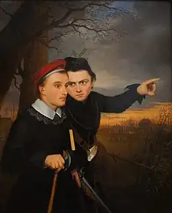 - Na lovu, autoportrét s přítelem Carlem Gottliebem Peschelem, Zhořelec 1825