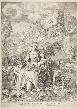 Sbírky Rudolfa II. obsahovaly i řadu kreseb Albrechta Dürera, Rudolfova oblíbeného malíře, které Sadelerovi posloužily jako předlohy k ryteckým transformacím. Dokládá to Sadelerův mědiryt Panna Marie s Ježíškem a se zvířaty (1598) zhotovený podle Dürerovy kolorované perokresby (1503). Aegidiua II. Sadeler v této rytině použil i lept s cílem dosáhnout větší prostorovosti. Dokládá to, že Sadeler předlohy dotvářel, přičemž zachoval jejich ucelený charakter.
