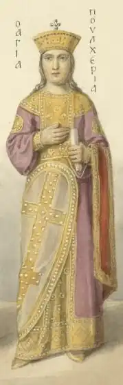 Aelia Pulcheria (399453) byla dcera východořímského císaře Arcadia a jeho ženy Aelie Eudoxie. Již ve čtrnácti letech se prohlásila augustou a převzala regentskou vládu za svého mladšího bratra Theodosia II., kterou doposud vykonával pretoriánský prefekt Anthemius. Proslula jako podporovatelka církve a zasazovala se o boj proti pohanům a heretikům. Po bratrově smrti se roku 450 provdala za budoucího císaře Marciana. Zemřela v roce 453.