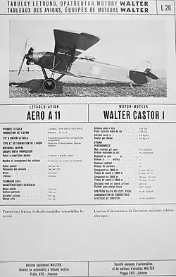 Aero A-11 a Walter Castor I (1928), od roku 1932 vyráběn jako Aero A-211