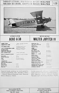 - A-38 - verze s motory Walter Jupiter IV ( výr. č. 1, 4, 5, 6)
