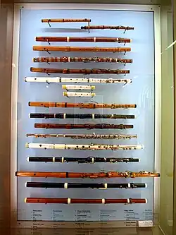 Flétny v oddělení dechových nástrojů Českého muzea hudby v Praze