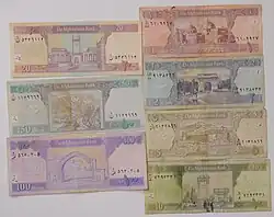 | Bankovky | 1, 2, 5, 10, 20, 50, 100, 500, 1000 afghání |