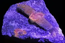 ![]() Krystal afghanitu v kalcitu společně s pyritem z typové lokality Sar-e-Sang | |
