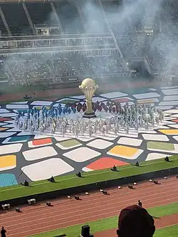 V kulturním intermezzu představujícím 4 kulturní oblasti Kamerunu se představilo 500 mladých ambasadorů a maskot Mola, který se účastnil tance, vystoupení nabídl hostitelský umělec Fally Ipupa.[16] Během tohoto průvodu se divákům zjevil virtuální lev, kterého vytvořil belgický grafik Thibault Baras na nápad kreativní společnosti lib.[17] Tento lev, vytvořený v rozšířené realitě a zapnutý na herním enginu, je 16 metrů dlouhý, 8 metrů vysoký a váží tunu.[18][19]