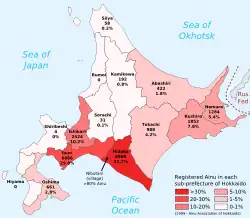 - ↑ Ainu [online]. Countries and their cultures [cit. 2013-01-31]. Dostupné online. (anglicky)
