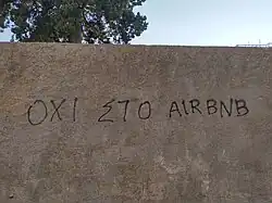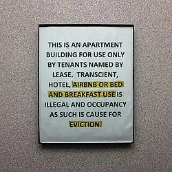 Služba Airbnb byla kritizovaná za údajné zvýšení cen okolního bydlení. Od globalizace společnosti schválilo mnoho vlád různými předpisy omezujícími činnost krátkodobých společností poskytujících pronájem nemovitostí, jako je Airbnb. V San Franciscu vedl tento problém k protestům v listopadu 2015.[38] Pronajímatelé byli obviněni z nezákonného vystěhování nájemníků, aby převedli nemovitosti na seznamy Airbnb. Studie University of Massachusetts v Bostonu Katedra ekonomie zjistila, že s každými 12 zápisy Airbnb se poptávka nájemného zvýšila o 0,4% ceny.[39] V okolí se zvyšuje i kriminalita.[40]