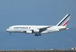 Přistávající Airbus A380 společnosti Air France