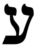 ![]() Hebrejský Ajin napsaný patkovým písmem | |