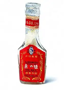 Ajinomoto Co., Inc. Byla založena roku 1908 jako dceřiná společnost firmy Suzuki Pharmaceutical Company, kterou v květnu 1907 společně založili Saburosuke Suzuki II. a Kikunae Ikeda. Ajinomoto vznikla proto, aby mohl Kikunae Ikeda, který byl profesorem chemie na Tokijské císařské univerzitě, prodávat ochucovadlo glutamát či glutaman sodný, které vynalezl a jehož výrobu z pšenice si nechal patentovat. Toto ochucovadlo vytvořil poté, co zjistil, že glutaman sodný je zdrojem chuti, kterou nazval umami. Společnost Ajinomoto představila Ikedovo ochucovadlo v dubnu 1909 na nové výstavě výrobků v Tokiu pod značkou AJI-NO-MOTO,[4] a hned následující měsíc ho začala prodávat.[5] Marketing společnosti mířil v první řadě na ženy v domácnosti. Tomu napomáhala ochranná známka hospodyňky v zástěře a reklamy v novinách a na poutačích.[3]