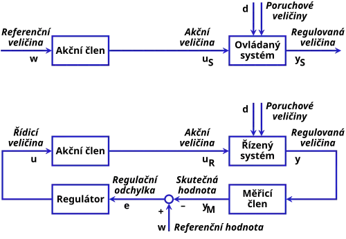 Dole: Při regulaci máme uzavřený obvod, v němž je akční veličina vstupní veličinou regulované soustavy.