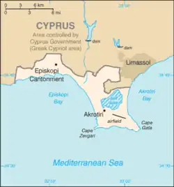 V tomto článku byly použity překlady textů z článků Akrotiri na polské Wikipedii a Akrotiri and Dhekelia na anglické Wikipedii.
