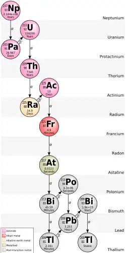 - ↑ a b D. F. Peppard; G. W. Mason; P. R. Gray; J. F. Mech. Occurrence of the (4n + 1) series in nature. Journal of the American Chemical Society. 1952, s. 6081–6084. Dostupné online. doi:10.1021/ja01143a074.