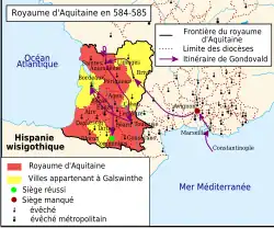 - ↑ Généalogie de Gondovald d'AQUITAINE MÉROVINGIEN. Geneanet [online]. [cit. 2021-12-20]. Dostupné v archivu pořízeném z originálu dne 2017-10-22. (anglicky)