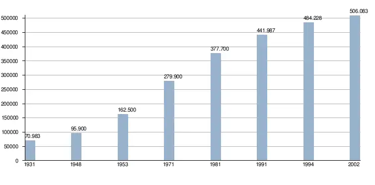 | 1948 | 1953 | 1961 | 1971 | 1981 | 1991 | 1994 | 2002 | |