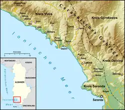 - ↑ a b Albánská riviéra | Jihozápadní Albánie | Průvodce po Albánii [online]. [cit. 2021-06-19]. Dostupné online.