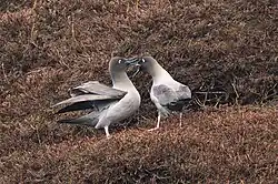 - ↑ BERRUTI, A. DISPLAYS OF THE SOOTY ALBATROSSES PHOEBETRIA FUSCA AND P. PALPEBRATA. Ostrich. 1981-06, roč. 52, čís. 2, s. 98–103. Dostupné online [cit. 2023-10-05]. ISSN 0030-6525. doi:10.1080/00306525.1981.9633590. (anglicky)