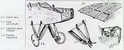 Dvoukolový široký podvozek (rozchod 1,55 m) měl kola namontována na prohnutých polonápravách (V- vzpěry) zavěšených uprostřed spodní části trupu. Ostruha byla tvořena ocelovou, dvojitou listovou pružinou. Motor byl přichycen na jednoduchém rámu z ocelových trubek. Benzin se přiváděl do karburátoru motoru gravitačním spádem ze dvou nádrží z hliníku, umístěných v křídle.[6] Letoun díky jednoduché konstrukci byl snadno rozebratelný, křídlo bylo připevněno k trupu v šesti bodech dvanácti šrouby, skupina ocasu pěti šrouby.[5]