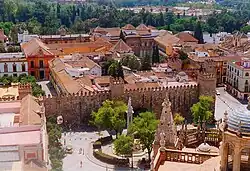 Původní opevnění bylo postaveno na místě římského a později vizigótského osídlení. První prvky palácového opevnění začalo toto místo nést po dobytí Sevilly Araby v roce 712; ti již od roku 720 využívali toto místo jako sídlo svých vládců. V roce 884 přispěla pevnost k odražení vikinské invaze do města.