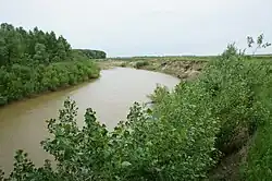 Převážnou část toku protéká přes Obskou planinu. Ústí zleva do Obu.