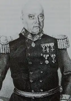 | Hodnost | viceadmirál (1856), kontradmirál (1849), kapitán řadové lodi (1848), fregatní kapitán (1845), korvetní kapitán (1839) |