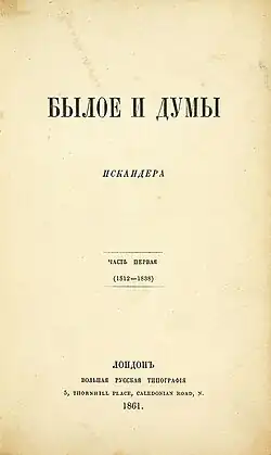 • O tom, co byIo (Былое и думы, 1852–1868) memoáry, které představují encyklopedie ruského ideového života třicátých až šedesátých let 19. století