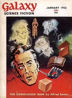 - The Demolished Man (časopisecky 1952, knižně 1953, Zničený muž), román odehrávající se roku 2301 a líčící snahu psychopatického obchodního magnáta a milionáře Bena Reicha spáchat beztrestně úkladnou vraždu s cílem zničit konkurenci, což se zdá ve společnosti kontrolované telepatickými strážci a vyšetřovateli nemožné. Román obdržel cenu Hugo.