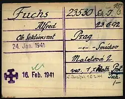 - ↑ Matrika doktorů Univerzity Karlovy: Alfred Fuchs [online]. Praha: Univerzita Karlova [cit. 2020-05-19]. Dostupné online.