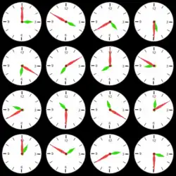 Ještě lépe si můžeme tento jev ukázat na příkladu s hodinami. Představme si, že někdo chce nafilmovat zrychlený záběr hodin. Rozhodne se snímat hodiny jednou za 10 minut. Na obrázku najdete jednotlivé záběry hodin a pod nimi výsledný film.