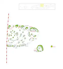 Alikoirah, Bathalaa, Beyrumadivaru, Dhin-nolhufinolhu, Ellaidhoo, Etheramadivaru, Fesdhoo, Fusfinolhu, Fushi, Gaagandu, Gaathufushi, Gangehi, Halaveli, Kandholhudhoo, Kudafolhudhoo, Kuramathi, Maagaa, Maayyafushi, Madivarufinolhu, Madoogali, Mathivereefinolhu, Meerufenfushi, Mushimasgali, Rasdhoo madivaru, Velidhoo, Veligandu, Vihamaafaru