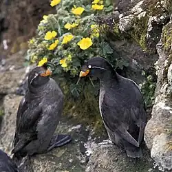 - ↑ a b c Crested Aucklet [online]. U.S. Fish & Wildlife Service. (Alaska Seabird Information Series). Dostupné v archivu pořízeném z originálu dne 2013-03-12.