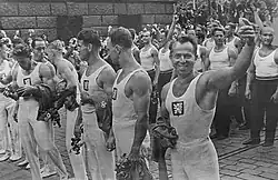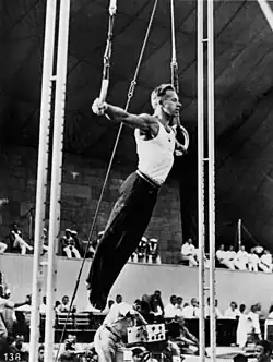V roce 1934 se přestěhoval do Prahy, kde získal zaměstnání jako úředník v bance. Po práci usilovně trénoval a připravoval se na olympijské hry, i když musel překonávat bolest v zádech, která byla následkem zranění na mistrovství světa v Budapešti. Na XI. olympijských hrách v Berlíně v roce 1936 se stal olympijským vítězem ve cvičení na kruzích, kde jeho mistrovským kouskem byl rozpor střemhlav.[4][2]Část jeho cvičení trvající 85 sekund je zachycena ve filmu Leni Riefenstahlové Olympia.