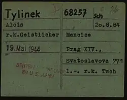 - ↑ K jubileu byly v roce 1957 vytištěny kvalitní barevné pamětní sv. obrázky s malbami slavných umělců (Carlo Dolci, Rafael Santi, Petr Brandl) a popisem Mons. P. Alois Tylínek, kněz jubiliár, 50 let vysvěcení. Praha Nusle, sv. Václav, červenec 1957