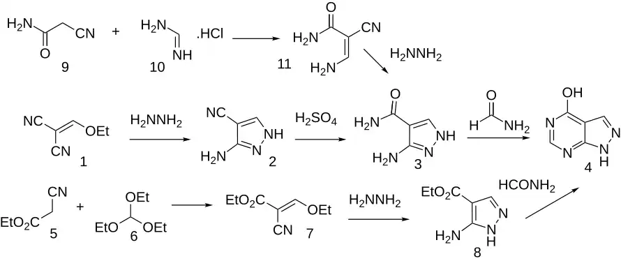 29. http://drugsynthesis.blogspot.co.uk/2011/11/laboratory-synthesis-of-allopurinol.html