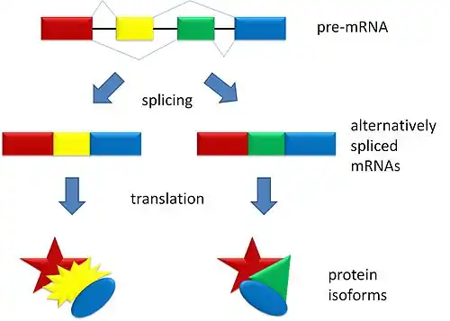 Po přepisu DNA v jádře prochází tzv. primární transkript RNA úpravami, v jejichž rámci se dlouhé nekódující úseky (introny) vystřihují a ostatní sekvence (tzv. exony) je možné spojit různými způsoby. Z výsledných několika RNA vytvořených od jednoho genu tak mohou být syntetizovány různé izoformy daného proteinu. Ne všechny varianty mRNA však kódují proteiny a alternativnímu sestřihu podléhají i jiné typy RNA, které proteiny nekódují.