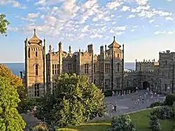 - Voroncovský palác – rozsáhlý trojkřídlý zámek ve stylu romantismu byl vystavěn v letech 1828–1846, je obklopen Voroncovovým - Alupkinským parkem o rozloze 40 hektarů. Stavbu navrhl anglický architekt Edward Blore pro knížete Michaila Semjonoviče Voroncova. Její konstrukce je moderní, s ocelovými sloupy a terasami. V romantické výzdobě se střídají různé slohy a prvky gotiky, renesance (mramorové sochy lvů jsou kopiemi florentských soch Mediciů), vstupní portikus na schodišti je maurskou Alhambrou. Jedno křídlo bylo přistavěno pro knížete Šuvalova. Vnitřní zařízení se dochovalo jen z malé části.