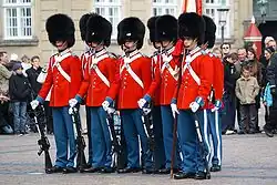 Toto královské sídlo střeží ve dne v noci Královská garda. Vojáci v černo-modrých a červeno-modrých uniformách nosí vysoké tmavé medvědice na hlavě. Každé poledne dochází ke slavnostnímu střídání stráží, doprovázeném hudbou. Je-li doma král, pochod gardy se neobejde bez praporů a královské standardy.