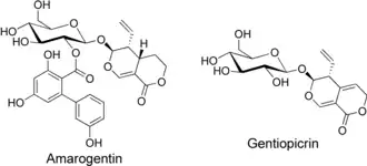 Amarogentin je organická sloučenina vyskytující se v hořci žlutém a hořci himalájském.[2]