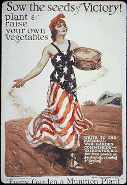 K prvnímu rozsáhlému použití propagandy americkou vládou došlo během první světové války. Vláda si najímala občany, včetně dětí, aby pomohla propagovat válečné dluhopisy a poukazy a stimulovala tak ekonomiku. Aby udržela nízké ceny válečných zásob (oceli, potravin atd.), americká vláda tiskla plakáty, které povzbuzovaly lidi ke snižování odpadu a pěstování vlastní zeleniny ve „vítězných zahradách“. Veřejná skepse, která byla vyvolána tvrdou taktikou Výboru pro veřejné informace, vedla poválečnou vládu k oficiálnímu upuštění od používání propagandy.[4]
