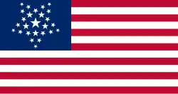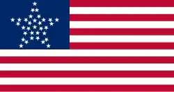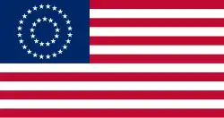První americká vlajka (Grand Union Flag)První americká vlajka s třinácti pruhy (Grand Union Flag) z roku 1775 se stala národní vlajkou USA již roku 1776, tehdy to ale byla vlajka patřící Britské Východoindické společnosti (Britská Východoindická společnost). V jejím kantonu byl ještě britský Union Jack, který vyjadřoval skutečnost, že povstalci chtěli zůstat loajální k britskému králi. Dne 14. června 1777 rozhodl Kongres USA, že v kantonu budou hvězdy, které společně s pruhy budou symbolizovat počet členů federace. Ovšem po vstupu Vermontu a Kentucky do federace se zvýšil dne 1. května 1795 počet pruhů na patnáct. Hrozilo tak, že vlajka s velkým počtem pruhů bude zvláště na moři špatně rozlišitelná, a navíc byla výroba nových vlajek značně nákladná. Proto Kongres USA přijal roku 1818 zásadu, že počet pruhů se vrátí na třináct, zvyšovat se bude pouze počet hvězd v kantonu a to vždy na státní svátek 4. července (i když se vstup dalších států uskutečnil k jinému datu).