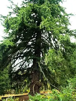 V roce 2010 bylo v zahradě evidováno 180 stromů a 149 ostatních dřevinných rostlin.[4] Celkem je zde zastoupeno 219 druhů a kultivarů severoamerických, evropských a asijských dřevin.[4] Podle původního areálu rozšíření patří 43 % dřevin do taxonů Severní Ameriky, 41 % do taxonů Evropy, 13 % do taxonů Asie a 3 % zůstala nezařazena.[4] 68 % stromů je listnatých a 32 % jehličnatých.[4] K věkovému zastoupení stromů: 76 % tvoří dospělí jedinci, 22 % dospívající a 2 % jsou přestárlí a odumírající.[4] Nejstarším a zároveň nejvzácnějším exemplářem je dnes douglaska tisolistá (Pseudotsuga menziesii), která byla vysazena v roce 1842.[3] Podle posledního měření z května roku 2010 je výška stromu 34,8 m, obvod kmene 5,72 m a obvod koruny 68 m.[3] Jedná se o jeden ze tří nejstarších žijících exemplářů v kontinentální Evropě.[4] Douglaska tisolistá je jehličnatý strom, který dosahuje výšek okolo 50 metrů. Původně bychom douglasku našli v přímořských pohořích západní oblasti Severní Ameriky od Britské Kolumbie po Kalifornii.[14]