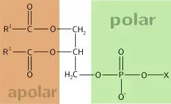 Fosfolipidy mají polární hydrofilní hlavu tvořenou polárními fosfáty a nepolární hydrofobní ocas tvořený mastnými kyselinami. Jsou jednou z nejdůležitějších amfifilních sloučenin, neboť jsou v živých organismech základní složkou biomembrán, kde vytvářejí fosfolipidovou dvouvrstvu. Tato dvojitá vrstva, ve které hydrofobní část směřuje dovnitř a hydrofilní část ven umožňuje polopropustnost biomembrány a další její pro život nezbytné vlastnosti.