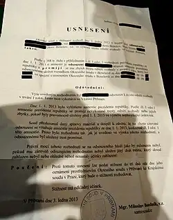 - ↑ Městský soud v Praze navrhl zrušit rozhodnutí o amnestii Archivováno 26. 1. 2013 na Wayback Machine., tisková zpráva Ústavního soudu, 23. ledna 2013