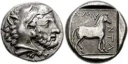 Obrázky, zvuky či videa k tématu Amyntás III. na Wikimedia Commons - Ražby Amynta III.
