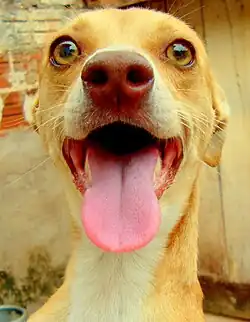 Dýchací soustava psa je tvořena dýchacími cestami a plícemi. Horní cesty dýchací začínají zvenku čenichem s nozdrami. Nosní houba je tmavě pigmentovaná, houbovitá a zvlhčována nosními sekrety. Nozdra psa na boku pokračuje hlubokým žlábkem (sulcus alaris), který vede nahoru a do strany. Při čichání slouží psovi k vydechování, aby si nerozvířil sledovanou pachovou stopu.[26]