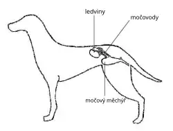 - ↑ Černý, Veterinární anatomie, kapitola 5.7.1.8. Močovod, ureter, s. 234