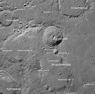 - ↑ Crater Anaximander on Moon Gazetteer of Planetary Nomenclature, IAU, USGS, NASA (anglicky)