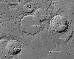 - ↑ Crater Anaximenes on Moon Gazetteer of Planetary Nomenclature, IAU, USGS, NASA (anglicky)