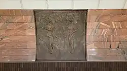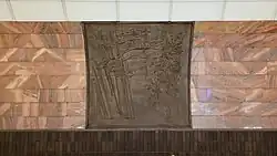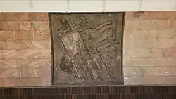 Ve stanici byly při její výstavbě umístěny bronzové reliéfy. Některé z nich, připomínající přátelství se Sovětským svazem nebo dobývání vesmíru, se nachází v prostoru nástupišť, v obou vestibulech[6] se pak nacházely reliéfy připomínající spolupráci mezi Moskvou a Prahou. Odlitky byly po sametové revoluci v roce 1989 odstraněny, krátce poté ale byly navráceny zpět.[7] Kamenná mozaika s panoramatem Moskvy byla po Sametové revoluci odstraněna natrvalo.[8]