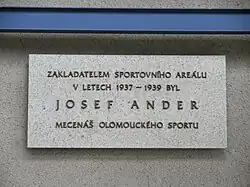 Jméno stadión nese po olomouckém velkoobchodníkovi Josefu Anderovi, který byl velkým příznivcem fotbalu, finančně podporoval SK Olomouc ASO a pro něj nechal v roce 1938 začít budovat nový moderní stadion. Stadión pro 20 000 lidí byl otevřen o dva roky později a jeho hlavní dominantou se stala železobetonová tribuna, kterou však zničili vojáci Wehrmachtu na sklonku druhé světové války, když vyhodili do povětří muniční sklad, který zřídili v útrobách tribuny.[4] Po válce byla vystavěna pouze provizorní dřevěná tribuna, která však sloužila až do roku 1976.